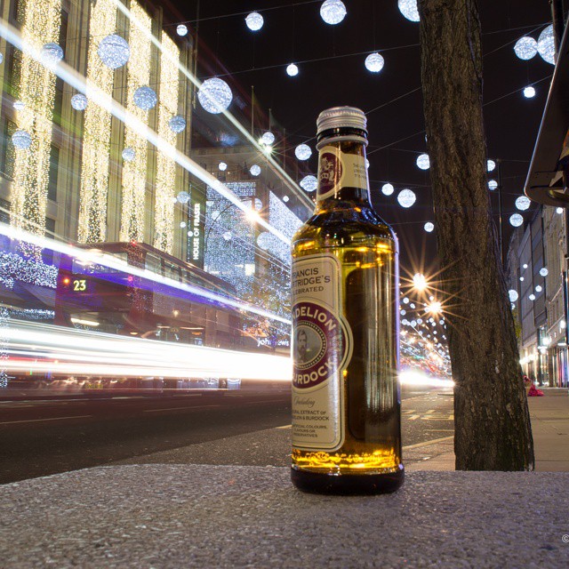 Bottle of beer left on a bench in Oxford street (at Oxford Street)