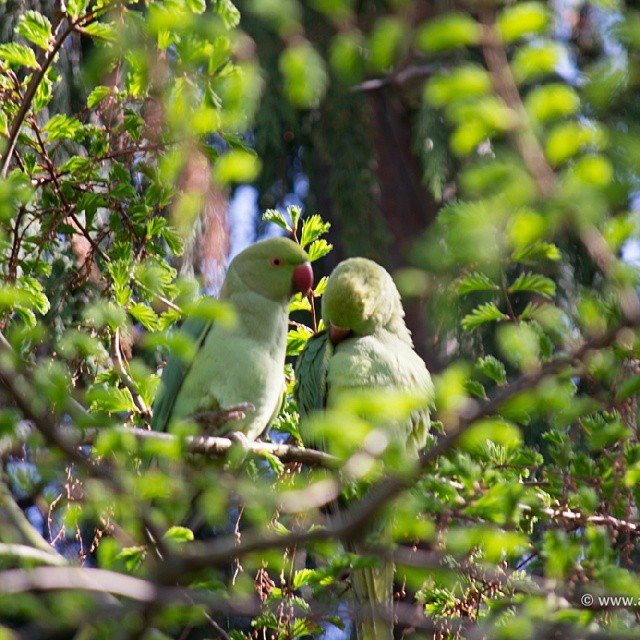 Give us a kiss! Parakeet smooching in the tree. #birds #parakeet #nature #london #bromley