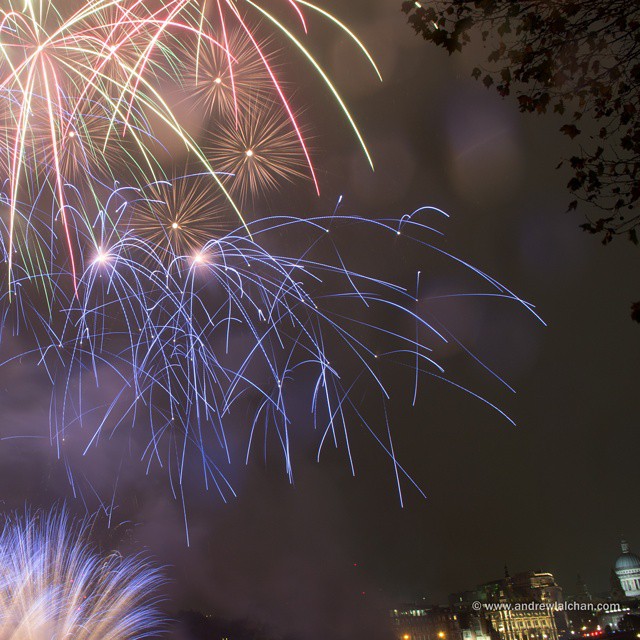 Lovely fireworks despite the heavy rain on the Thames (at Blackfriars Bridge)