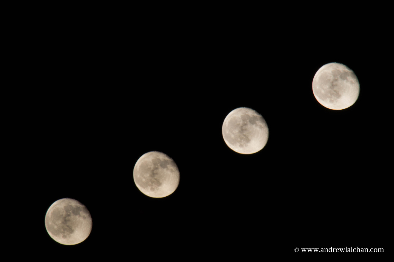 So that the camera didn’t move during the taking of the individual shots a remote was used to trigger. The camera is positioned so the moon is in the bottom corner of the frame.