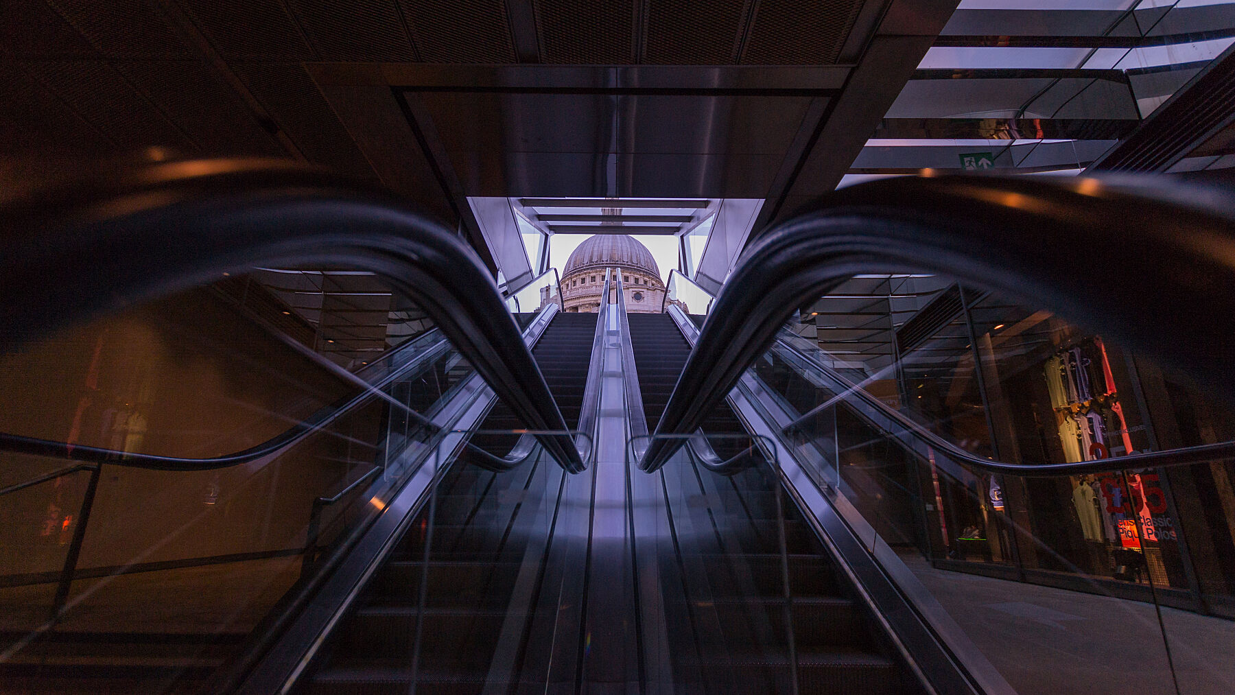 Looking up towards St Pauls catherdral inside the shopping centre escalator. You never know where you can get a perspective on an old favourite with leading lines.