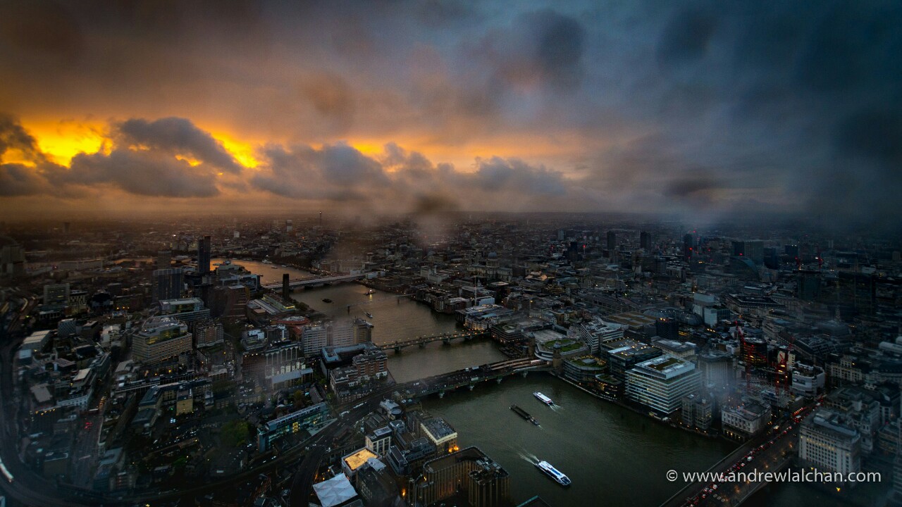 Up the Shard after a wet london day.